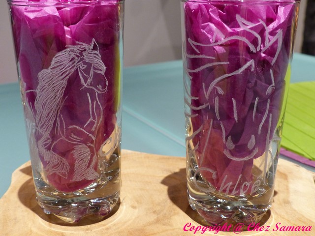 Réalisation de 2 verres gravés pour l'anniversaire d'une petite fille passionnée de chevaux